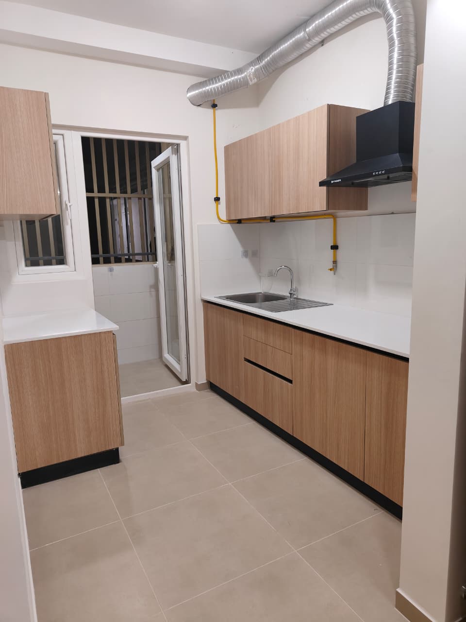 The modular kitchen is designed for efficiency and practicality, featuring adequate storage cabinets and well-planned counter space. It supports smooth daily cooking while maintaining a neat and modern appearance.