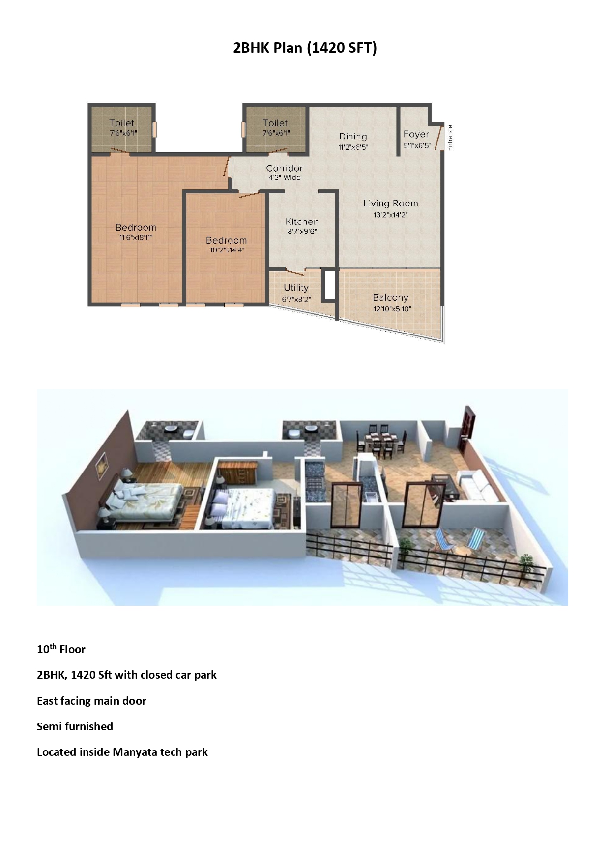 • Built-up Area: 1420 Sq.ft