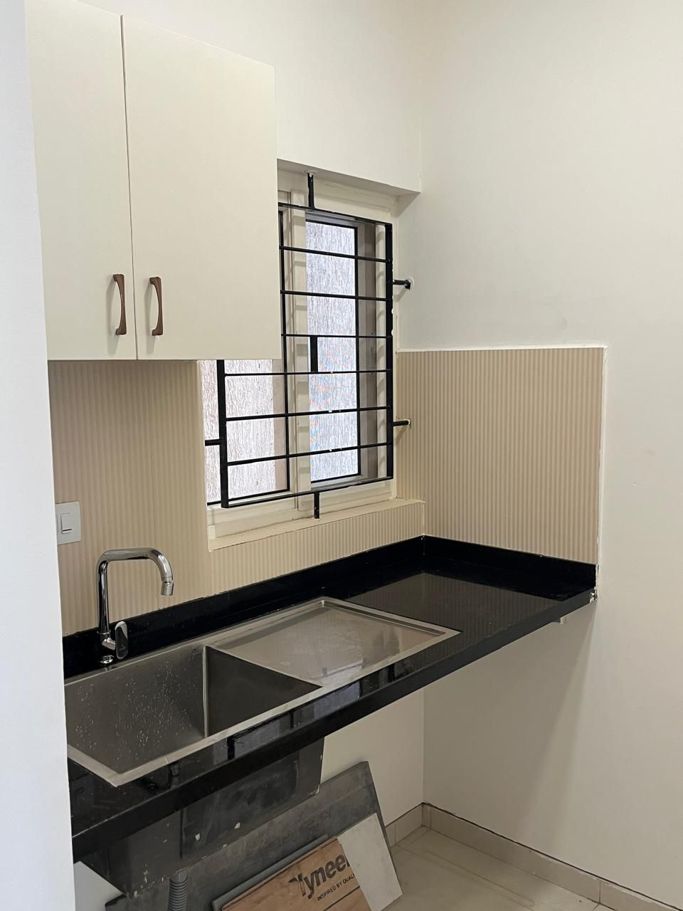 The semi-furnished modular kitchen comes with high-quality cabinets and fixtures, providing ample storage and efficient workspaces. There’s a utility area attached for additional convenience.