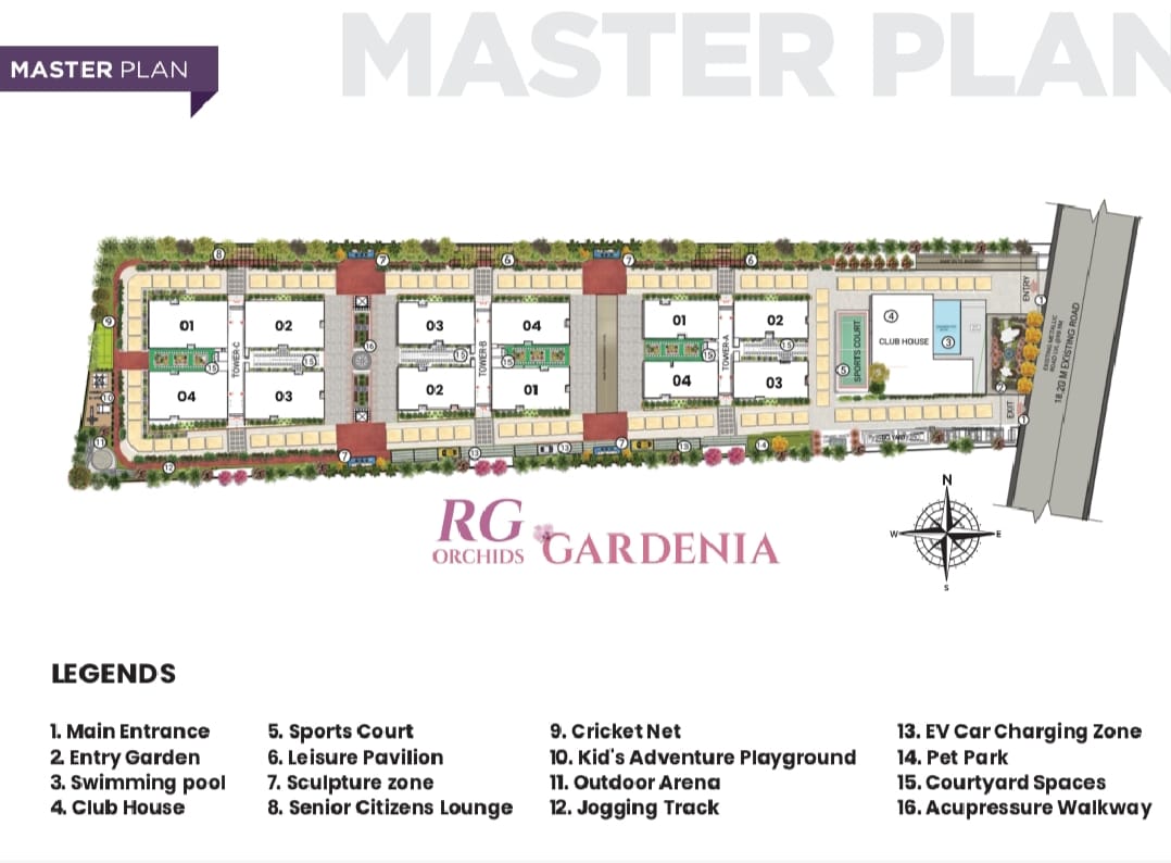 One of the standout features of RG Orchids Gardenia is its emphasis on open spaces. The project boasts 70% open space, allowing residents to enjoy nature and the outdoors while still being in the heart of the city. Lush green landscapes, walking paths, and recreational zones add to the overall appeal, making it a perfect setting for families and individuals looking to enjoy a harmonious blend of modernity and nature.