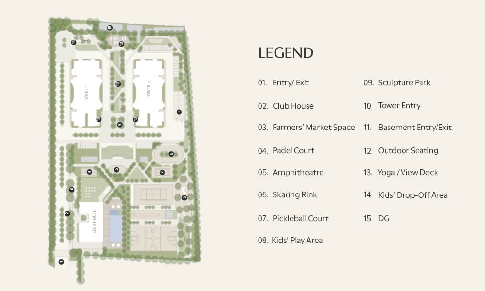 Built around a sustainability-first philosophy, the community promotes smarter, greener living through carbon-aware design and resource-efficient systems. Features such as rainwater harvesting, dual plumbing lines, water-saving fixtures, solar-powered common areas, LED lighting, EV charging support, and structured waste management reduce environmental impact while improving long-term livability. It is a future-ready address that combines luxury, responsibility, and tranquility in one balanced lifestyle offering.
