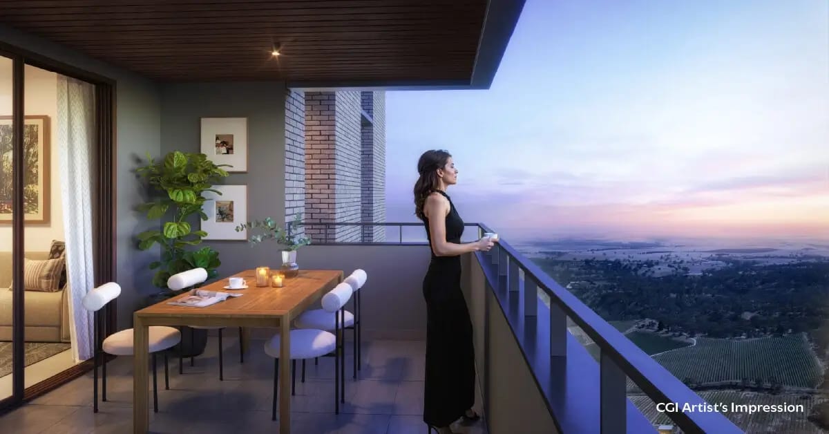 Spread across a large green campus with nearly 90% open space and a limited number of homes, the project delivers a low-density, high-privacy lifestyle. Residents enjoy world-class amenities, generous living balconies, and nature-facing views that bring light, air, and relaxation into daily life. The master plan blends modern architecture with natural elements, giving every home a sense of openness while maintaining strong connectivity to IT hubs, schools, healthcare, and upcoming metro access.