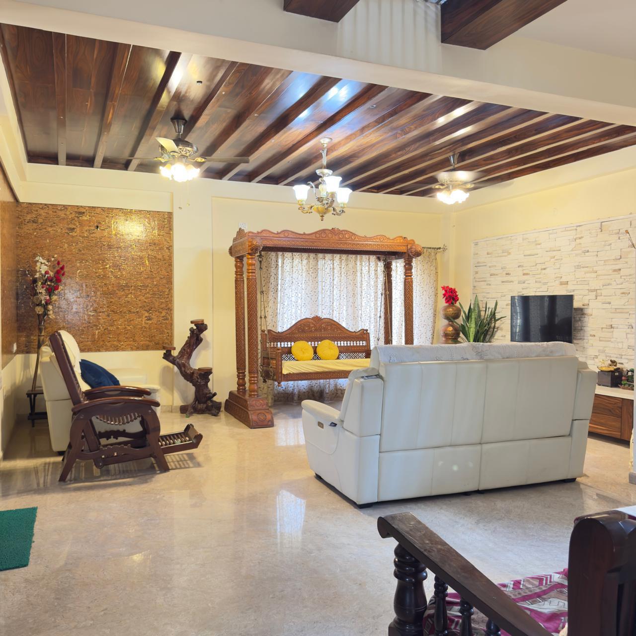 - BHK Configuration: The villa features a 5BHK layout, including a ground floor with a 1BHK and a first floor with 4BHK. This provides ample space for a large family or those who love hosting guests.