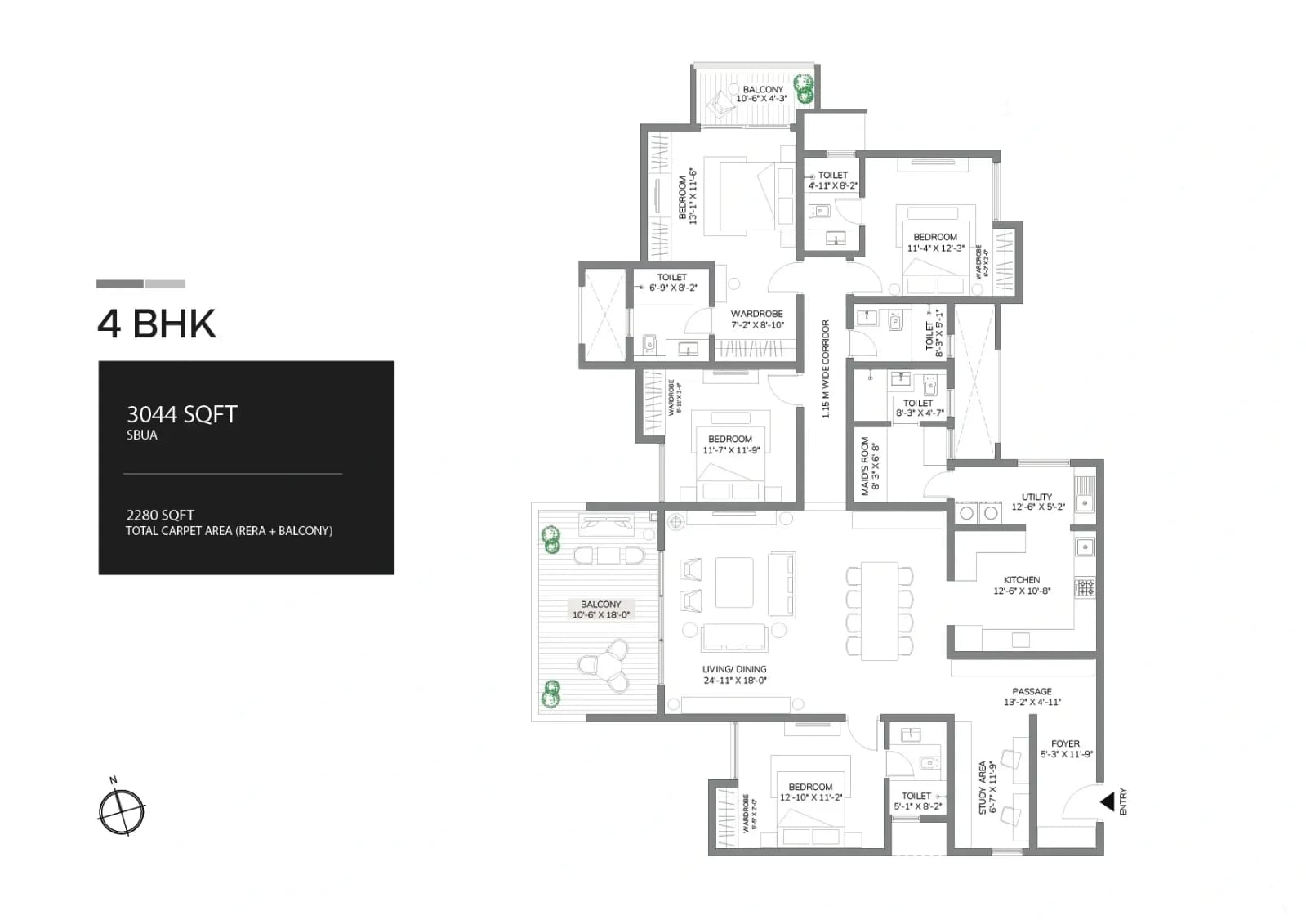 | 4 BHK + 4T | 3044 | ₹ 4.87 Crore Onwards |