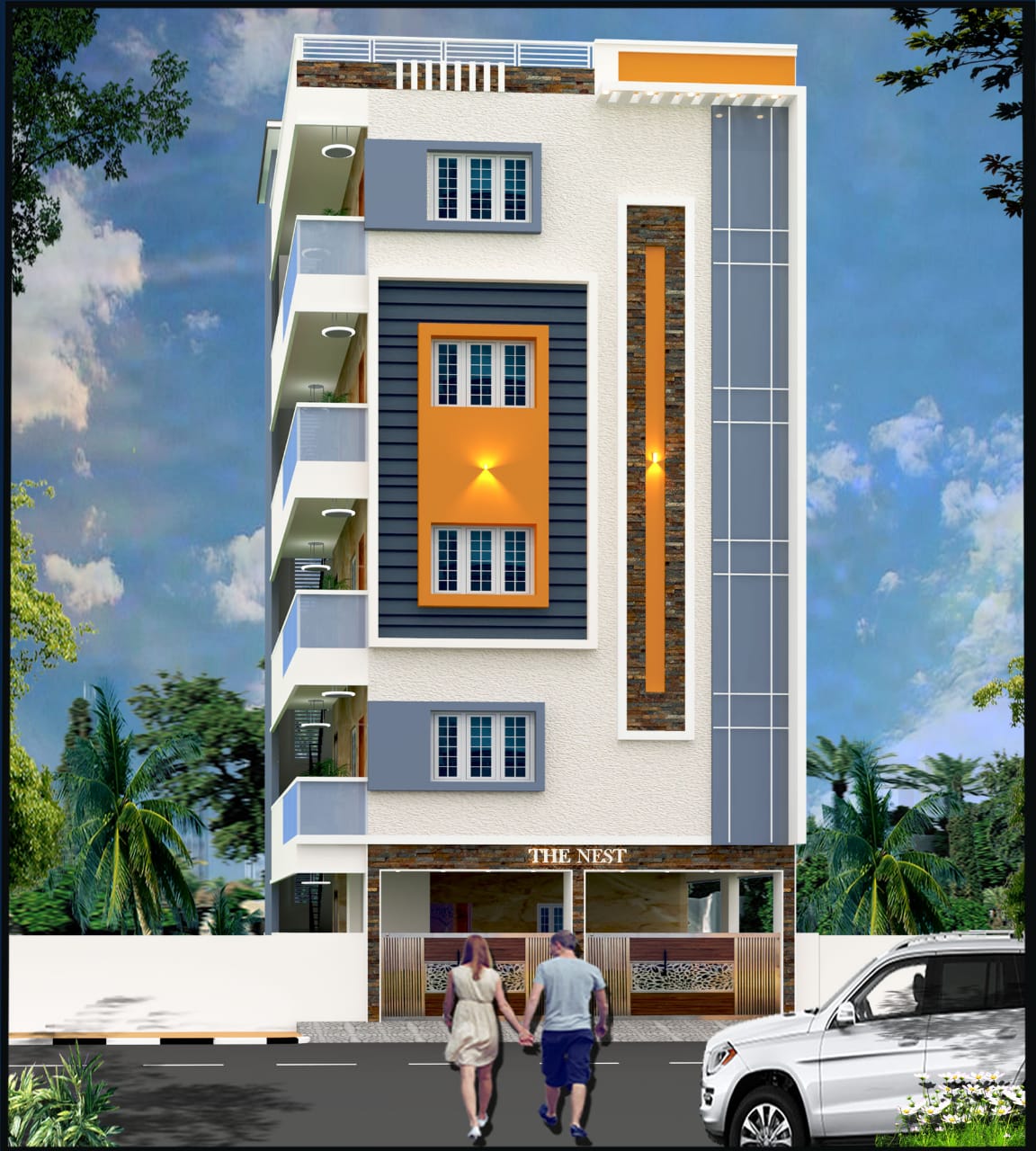 Built on a 1200 sqft plot area with a 5500 sqft built-up area, this G+4 building offers spacious living units. The layout includes: