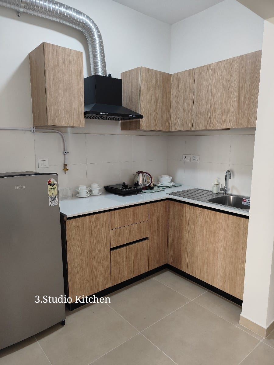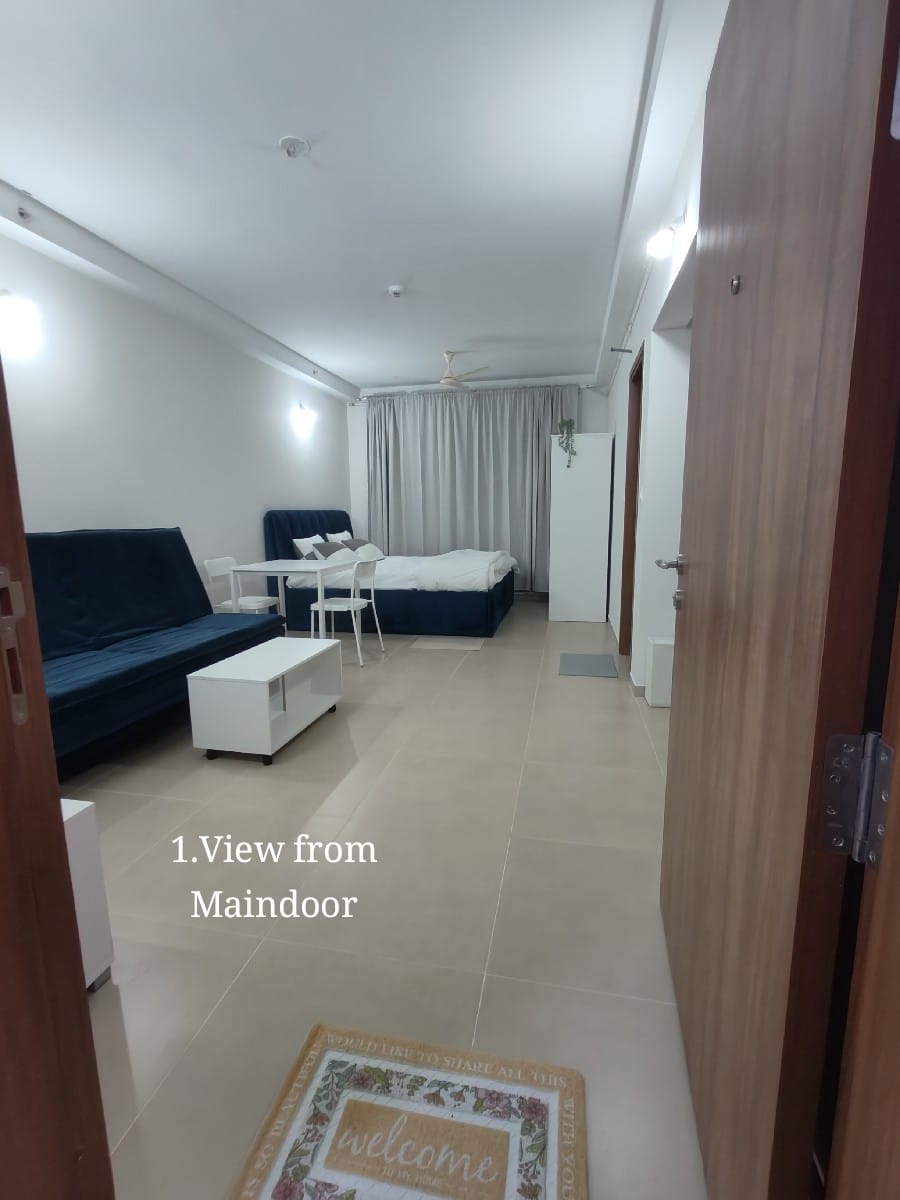 The studio apartment features a well-planned open layout that seamlessly integrates the living, sleeping, and dining areas. Tastefully furnished with modern furniture and décor, the space is designed to offer maximum comfort while maintaining a sleek, contemporary look.