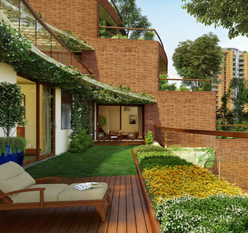 Tower 5 at Total Environment In That Quiet Earth offers premium 3 BHK L21 luxury apartments along with exclusive villas, thoughtfully crafted with the brand’s signature design philosophy. Spread amidst lush green landscapes, the project blends contemporary architecture with natural materials, private gardens, large decks, and expansive living spaces. The low-density layout ensures privacy, abundant ventilation, and abundant natural light, creating a serene and elite residential experience.